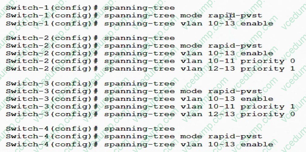 The network administrator enters the commands shown in Exhibit 2. What is the spanning tree status on A1 and A2?