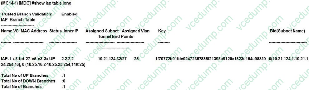 A network administrator configures an Instant AP (IAP) to establish an Aruba IPSec tunnel across the Internet, and configures two DHCP pools for wireless users. Based on the output shown in the exhibit, which device behaves as a DHCP server for the users?