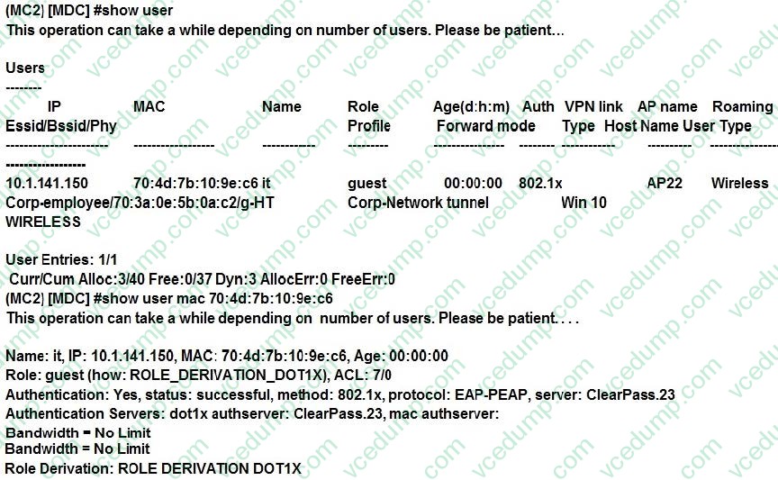 A. The MC assigned the machine authentication default user role.Refer to the exhibit.