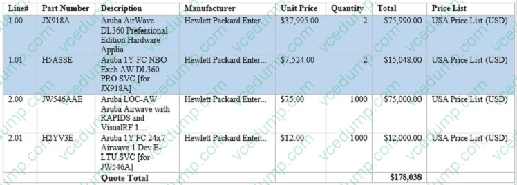 A customer needs an AirWave solution that can manage 1000 devices. The customer wants a hardware solution and active/standby redundancy for the solution. The exhibit shows the BOM that the architect has created.