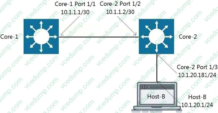 A. Core-2(config)# ip route 0.0.0.0/0 10.1.1.1 vrf GREEN Host-B: assign the default- gateway address 10.1.20.181Refer to the exhibit.
