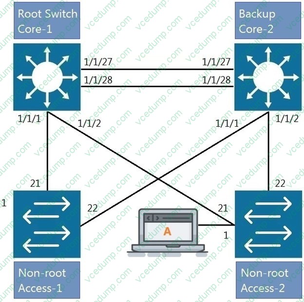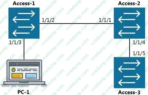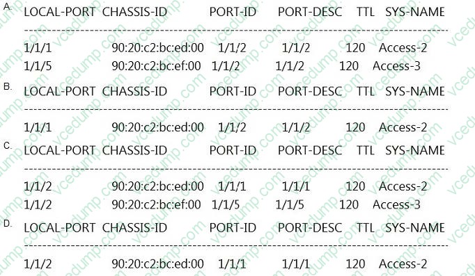 The command show LLDP neighbor-info gets typed into Access-1. All switches are Aruba OS-CX switches. What is the output of this command?