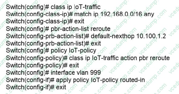 A. Implement route aggregationExamine the following AOS-CX configuration: Based on this configuration, which statement is correct regarding IoT traffic?