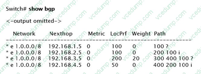 A. Both 802.1X and captive portalExamine the partial output of the BGP routing table of an AOS-CX switch: