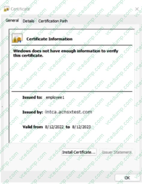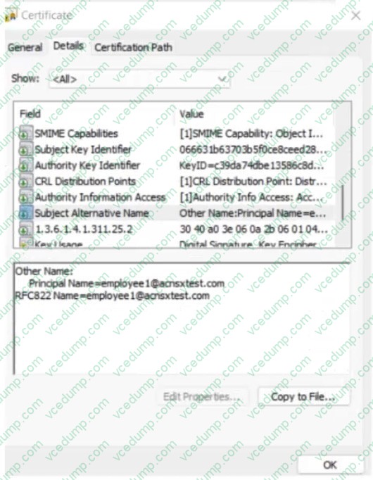 The company currently has a Windows domain and Windows CA. The Window CA issues certificates to domain computers, domain users, and servers such as domain controllers. An example of a certificate issued by the Windows CA is