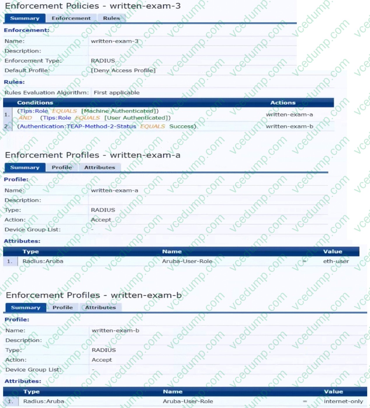 Clients in the AD group "Reception" are assigned to the "reception-staff" role The customer requires CPPM to assign authenticated clients to AOS firewall roles as follows: