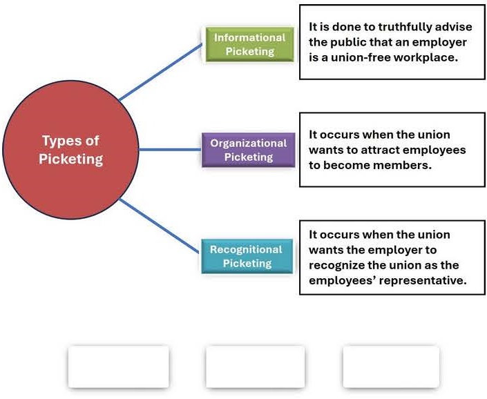 Drag and drop the types of picketing beside their corresponding descriptions.