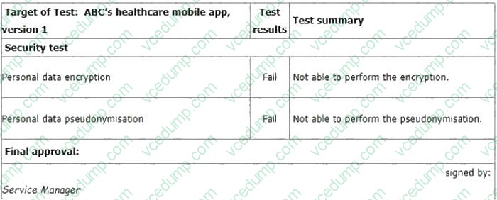 You ask the IT Manager why the organisation still uses the mobile app while personal data encryption and pseudonymization tests failed. Also, whether the Service Manager is authorized to approve the test.