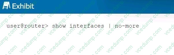 Referring to the exhibit, what happens when you filter the output of a command using the no-more parameter?