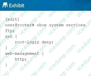 A. [edit] user@router# set system services ssh root-login allow explanation: