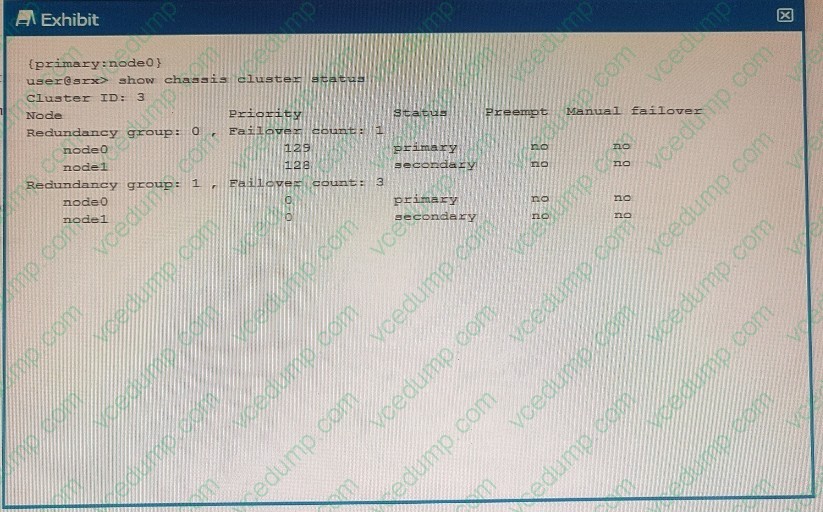 A. Redundancy group 1 is in an ineligible state.Which two statements are correct about JSA data collection? (Choose two.)