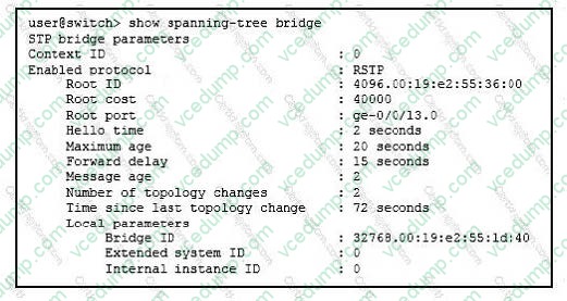 A. The switch is the only switch in the RSTP topology.Nowadays, the certification exams become more and more important and required by more and more enterprises when applying for a job. But how to prepare for the exam effectively? How to prepare for the exam in a short time with less efforts? How to get a ideal result and how to find the most reliable resources? Here on Vcedump.com, you will find all the answers. Vcedump.com provide not only Juniper exam questions, answers and explanations but also complete assistance on your exam preparation and certification application. If you are confused on your JN0-347 exam preparations and Juniper certification application, do not hesitate to visit our Vcedump.com to find your solutions here.