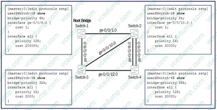 Referring to the exhibit, which port on Switch-2 will be selected as the RSTP root port?