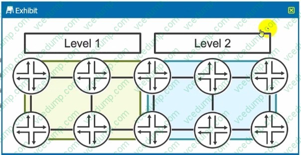 A. Prefixes in Level 1 will be redistributed to Level 2. B. Prefixes in Level 2 will be not redistributed to Level 1. C. Prefixes in Level 1 will not be redistributed to Level 2. D. Prefixes in Level 2 will be redistributed to Level 1.