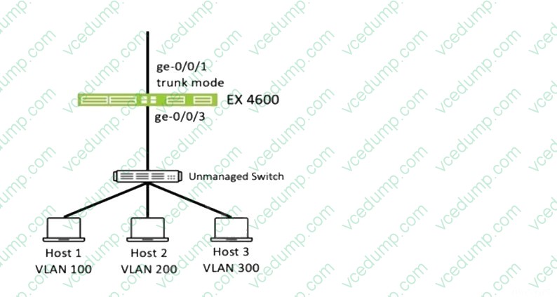 Your network has an unmanaged switch between the hosts and your EX Series switch. After the traffic enters theEX Series switch, each host must be on a separate VLAN.