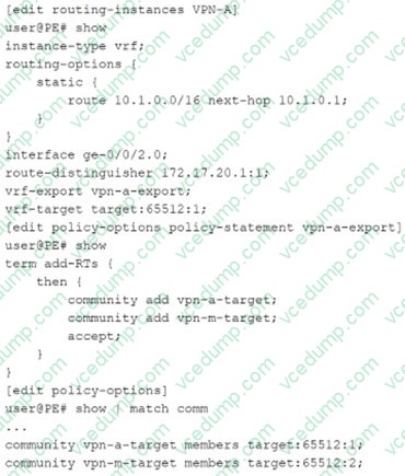 A. VPN routes are exported with the target:65512:1 and target:65512:2 route targets. explanation:
