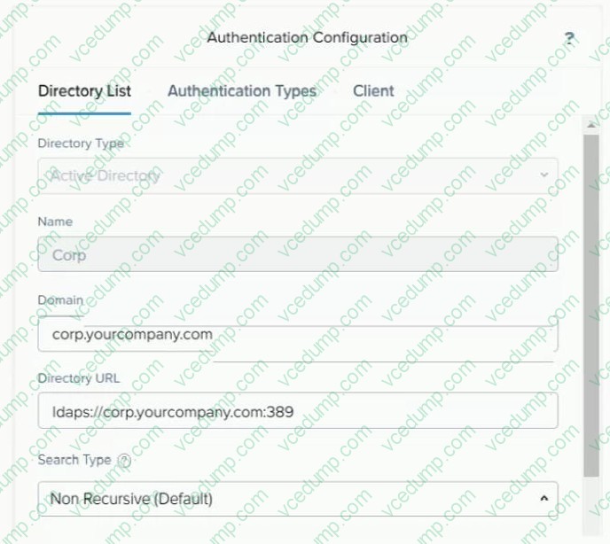 An administrator configures Active Directory authentication as shown in the exhibit. Upon finishing setup, users are not able to log in. What configuration change should be made to fix this issue?