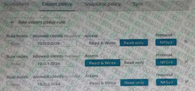 You are the administrator of Azure NetApp Files. You want to secure the NFS mount for your volume so that only the database server 10.10.8.14 can mount the volume. Referring to the exhibit, to secure the volume, which two steps must you perform in the export policy? (Choose two.)