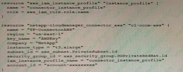 A. source = "hashicorp/terraform"Your customer wants to use NetApp Trident to automate data lake provisioning on premises using a NetApp AFF array in AWS using NetApp Cloud Volumes ONTAP. Their unstructured datasets will require 200 TB of storage, will be accessed by hundreds of worker nodes simultaneously, and will have millions of small files in a complex directory hierarchy.