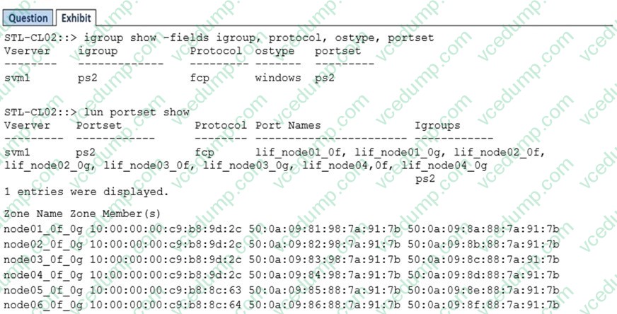 A. The zones between the hosts and LIFs are from node-05 and node-06.Click the Exhibit button.