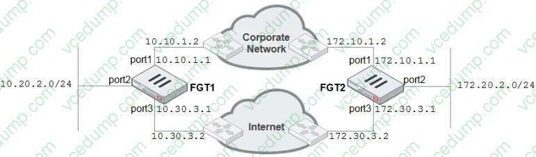 A firewall administrator must configure equal cost multipath (ECMP) routing on FGT1 to ensure both port1 and port3 links are used at the same time for all traffic destined for 172.20.2.0/24. Which of the following static routes will satisfy this requirement on FGT1? (Choose two.)