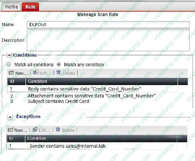 A. An email message containing the words "Credit Card" in the subject will trigger this scan ruleNowadays, the certification exams become more and more important and required by more and more enterprises when applying for a job. But how to prepare for the exam effectively? How to prepare for the exam in a short time with less efforts? How to get a ideal result and how to find the most reliable resources? Here on Vcedump.com, you will find all the answers. Vcedump.com provide not only Fortinet exam questions, answers and explanations but also complete assistance on your exam preparation and certification application. If you are confused on your NSE6_FML-6.0 exam preparations and Fortinet certification application, do not hesitate to visit our Vcedump.com to find your solutions here.