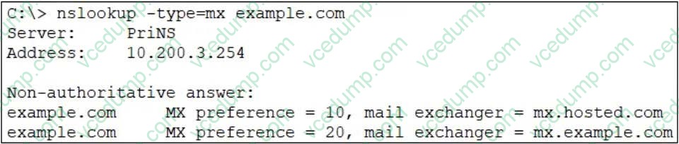 A. The user has received an IBE notification email, but has not accessed the HTTPS URL or attachment yet.Refer to the exhibit which shows an nslookup output of MX records of the example.com domain.
