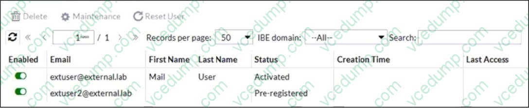 A. FortiGuard IP ReputationRefer to the exhibit which displays a list of IBE users on a FortiMail device.