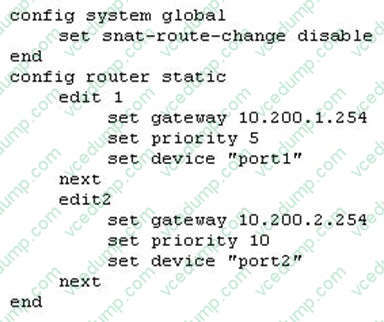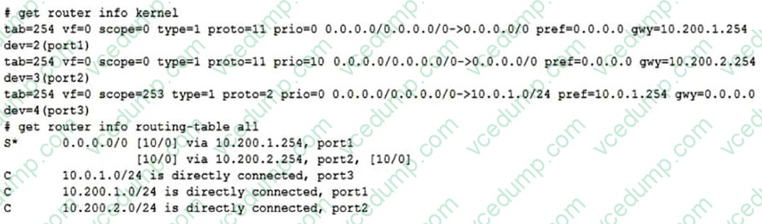 All traffic to the Internet currently egresses from port1. The exhibit shows partial session information for Internet traffic from a user on the internal network.