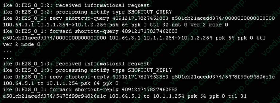 A. Some of them display statistics and configuration information about a feature or process.View the exhibit, which contains the partial output of an IKE real-time debug, and then answer the question below.