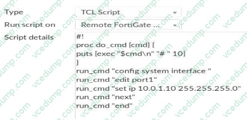 A. The slave configuration is synchronized with the master.Refer to the exhibit, which contains a TCL script configuration on FortiManager.