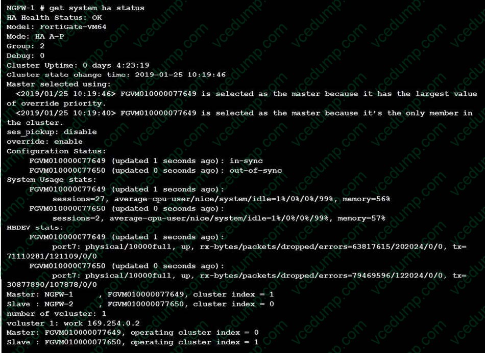 Refer to the exhibit, which contains the output of get system ha status. Which two statements about the output are true? (Choose two.)