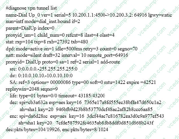 A. With the auxiliary session setting enabled, ECMP traffic is accelerated to the NP6 processor.Examine the output from the `diagnose vpn tunnel list' command shown in the exhibit; then answer the question below.