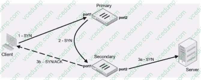 During the traffic flow the primary FortiGate forwards the SYN packet to the secondary FortiGate.