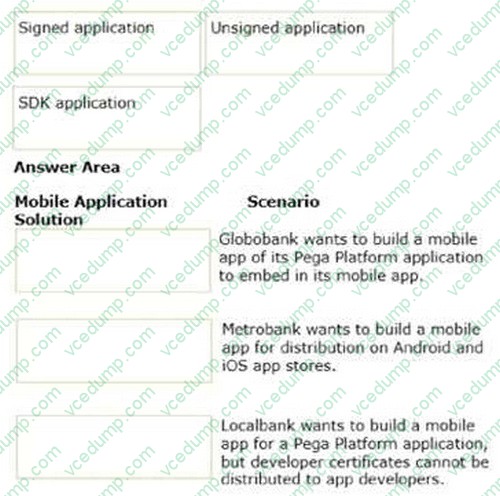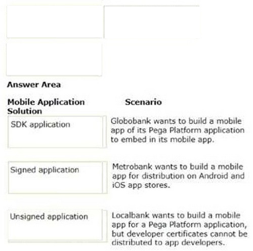 In the Answer Area, drag each mobile application solution on the left to the correct scenario.