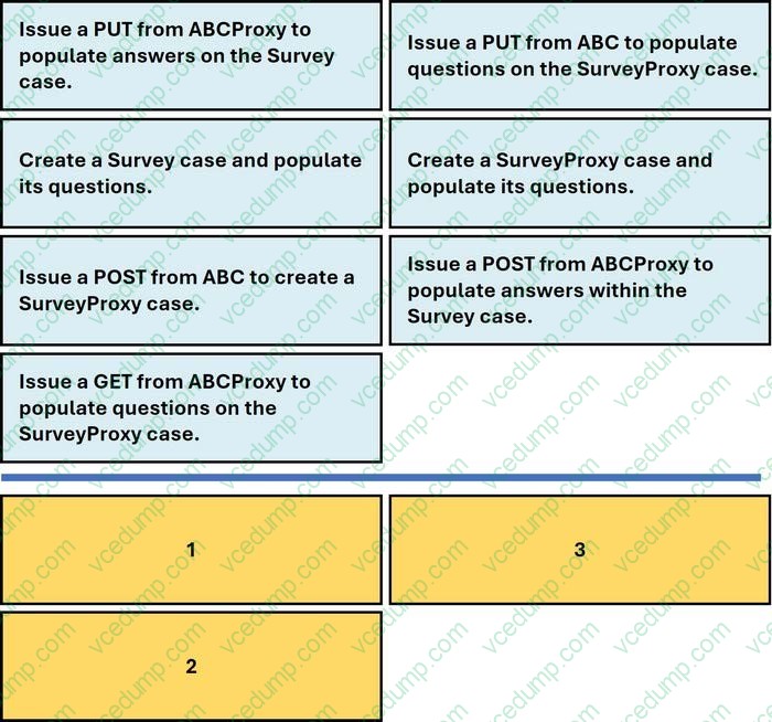 Application ABC defines and creates survey cases based on a customer s profile. a second application, ABCproxy, is hosted in a cloud environment. the ABC proxy application creates a survey proxy case on demand from application ABC.