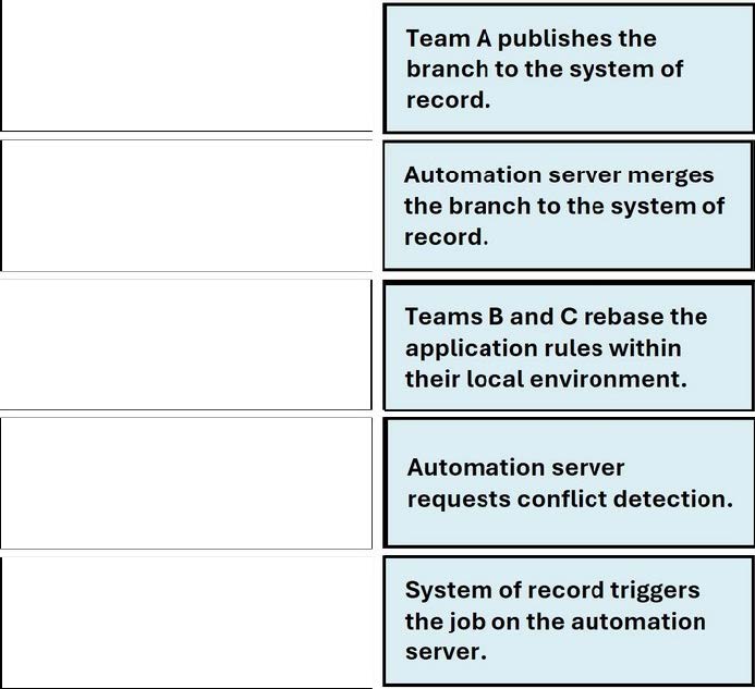 To ensure all development teams are working with the latest version of shared rule base, select and move all of the following tasks to the tasks List Order column and place them in the correct order.