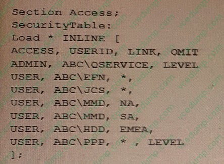 The Section Access security table for an app is shown. User ABC\PPP opens a Qlik Sense app with a table using the field called LEVEL on one of the table columns. What is the result?