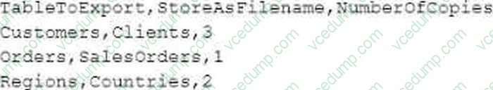 A. A security rule has been applied to the sheet object.A data architect needs to develop a script to export tables from a model based upon rules from an independent file. The structure of the text file with the export rules is as follows: