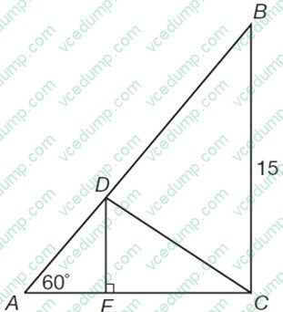 In the diagram above, ABC and DEC are right triangles, the length of side BC is 15 units, and the measure of angle A is 60 degrees. If angle A is congruent to angle EDC, what is the length of side DC?