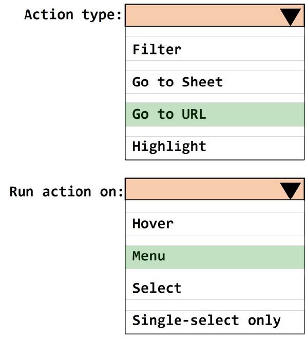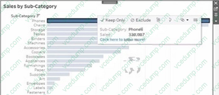 You want to ensure that when you click a bar on a dashboard, a tooltip appears that contains a link named "Click here to know more!" as shown in the following exhibit.