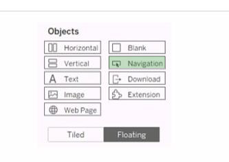Navigation objects are used to create links between dashboards or sheets in a workbook. You can add a navigation object to a dashboard by dragging it from the list of objects and dropping it on the dashboard.