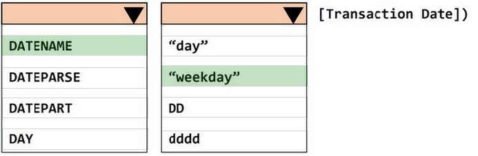 How should you complete the formula? (Use the dropdowns in the Answer Area to select the correct options to complete the formula.)