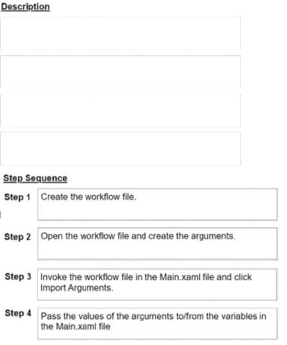 Instructions: Drag the Description found on the left and drop on the correct Step Sequence found on the right.