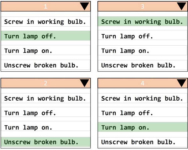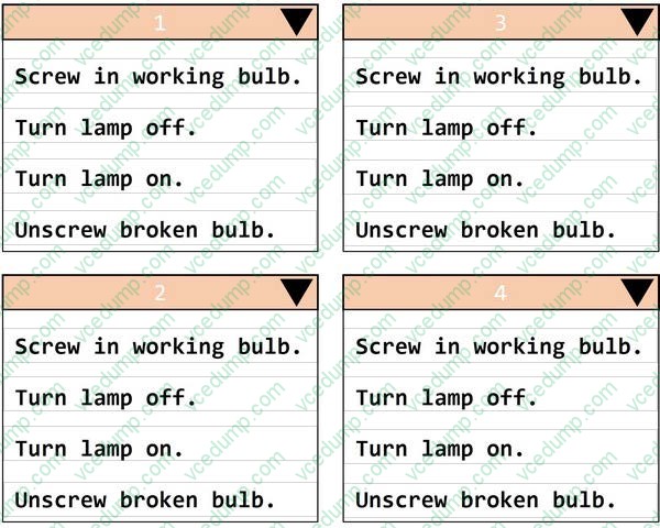 Oder the tasks needed to safely replace a lamp's light bulb from first (1) to last (4).